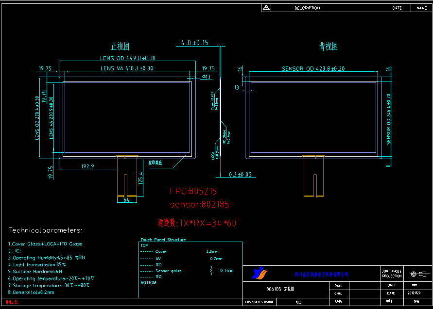 The lens of the touch panel measures 449.8*270.4*4mm, providing ample space for users to interact with the device. The vertical aperture (Va) measures 410.3*230.9mm, which is ideal for users who need a large touch surface for their work or entertainment.